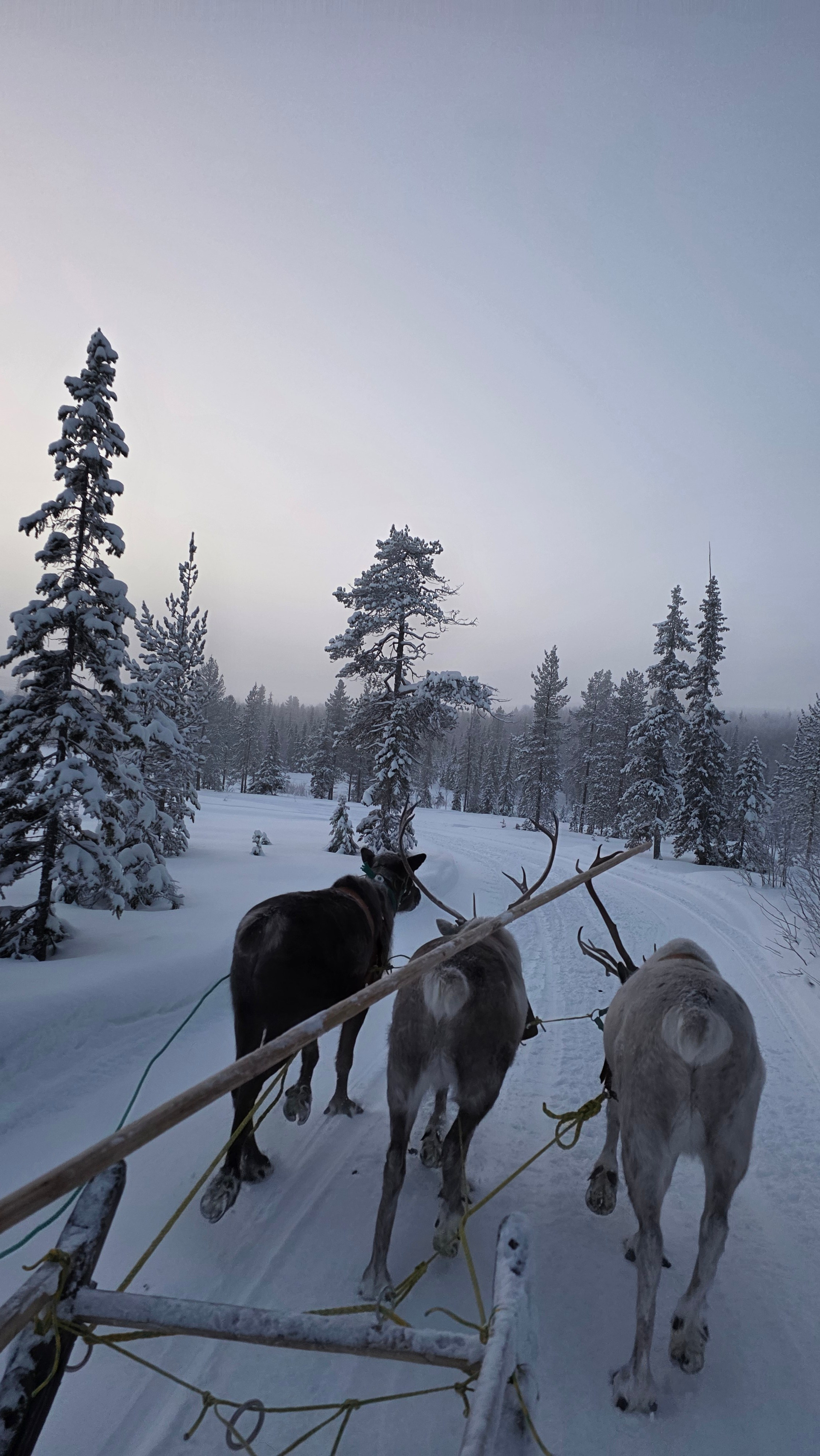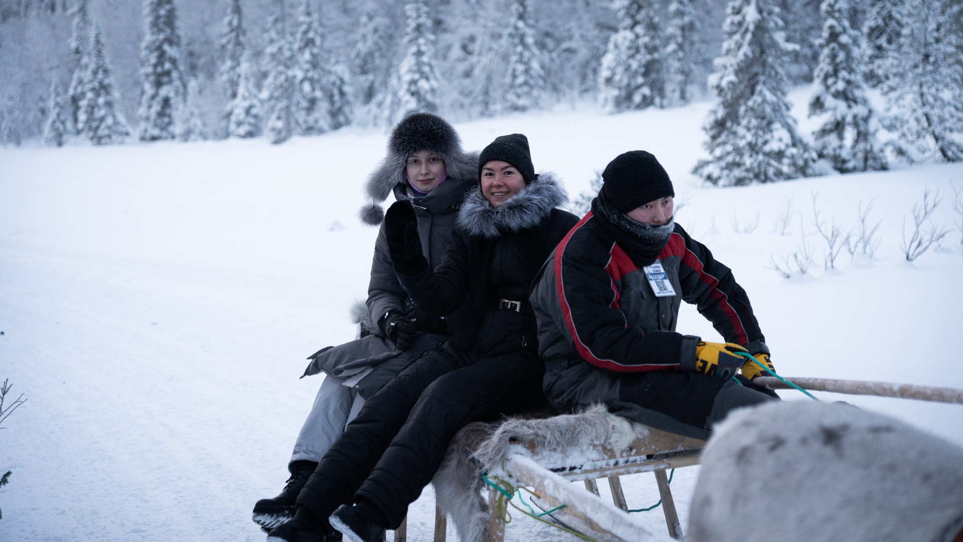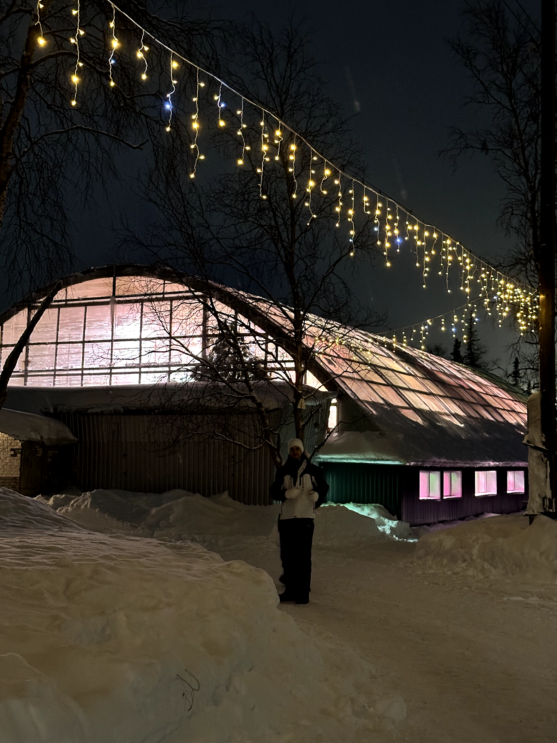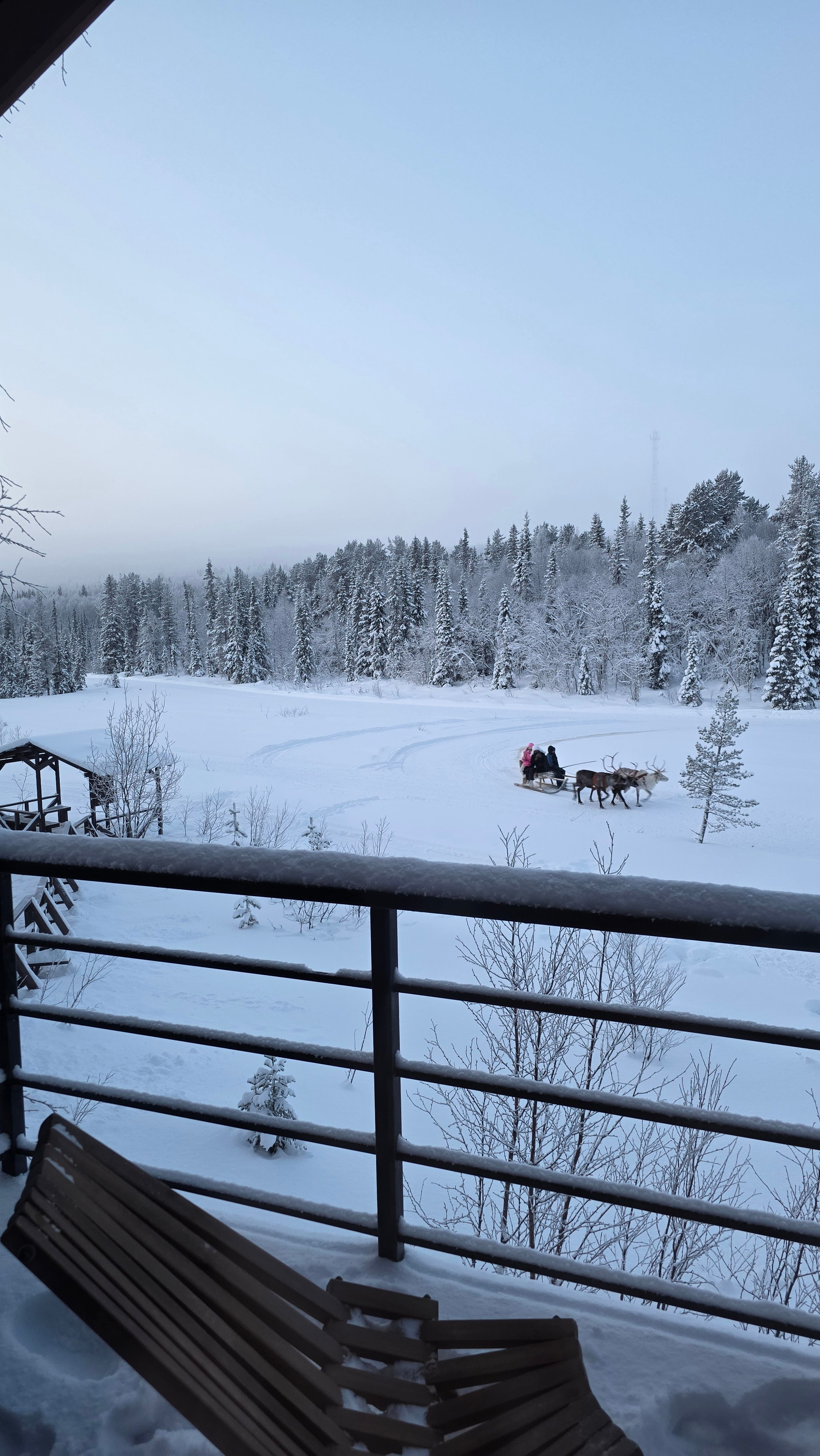 Дорога обратно в Мурманск — время для осмысления. Мы свернулись к глэмпингу «Тайга». Встречали Новый год в домике посреди заснеженного леса. А наутро проснулись от звука колокольчика оленьей упряжки у нас под окнами и отправились кататься в соседний парк «Северное сияние».