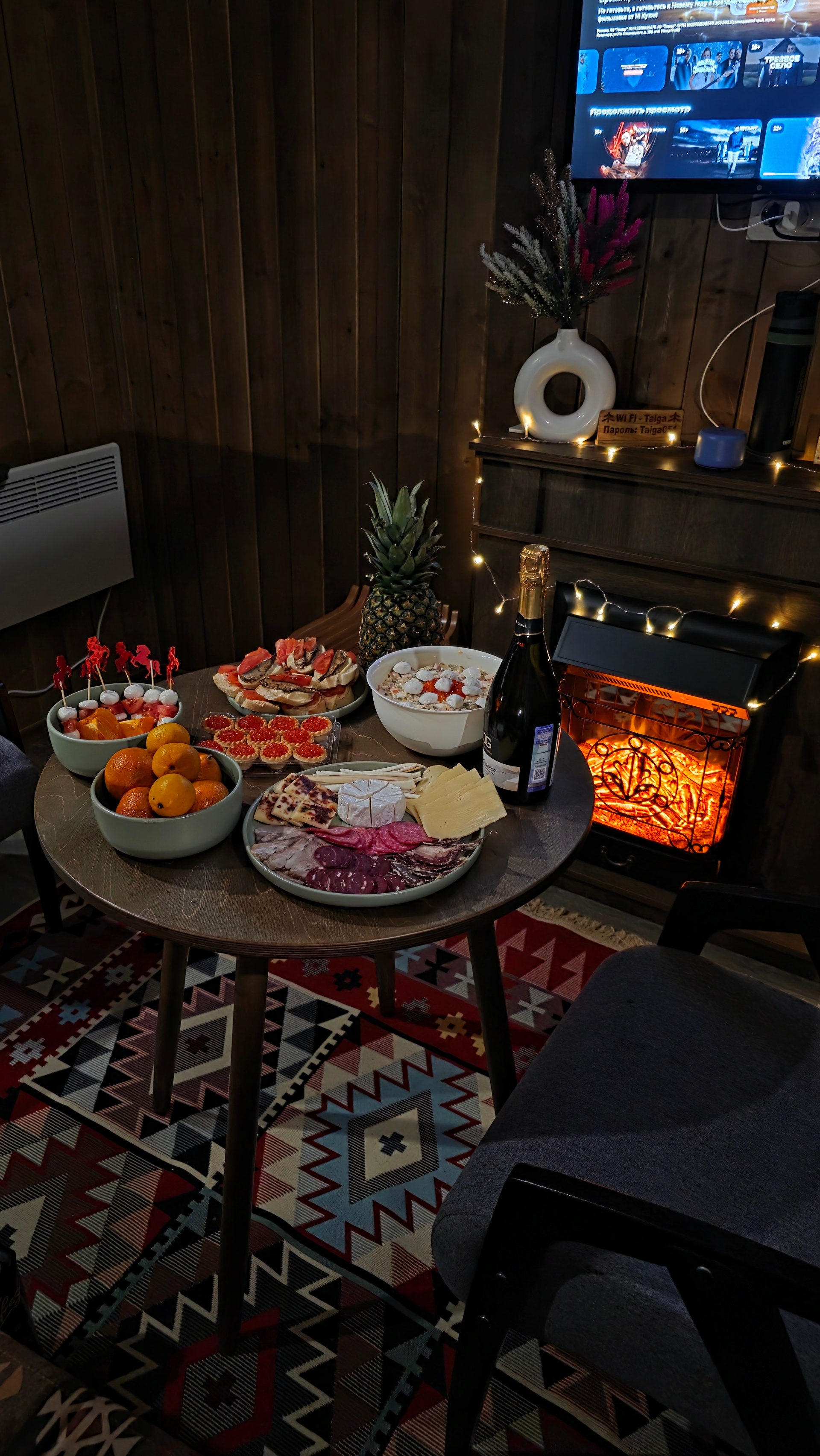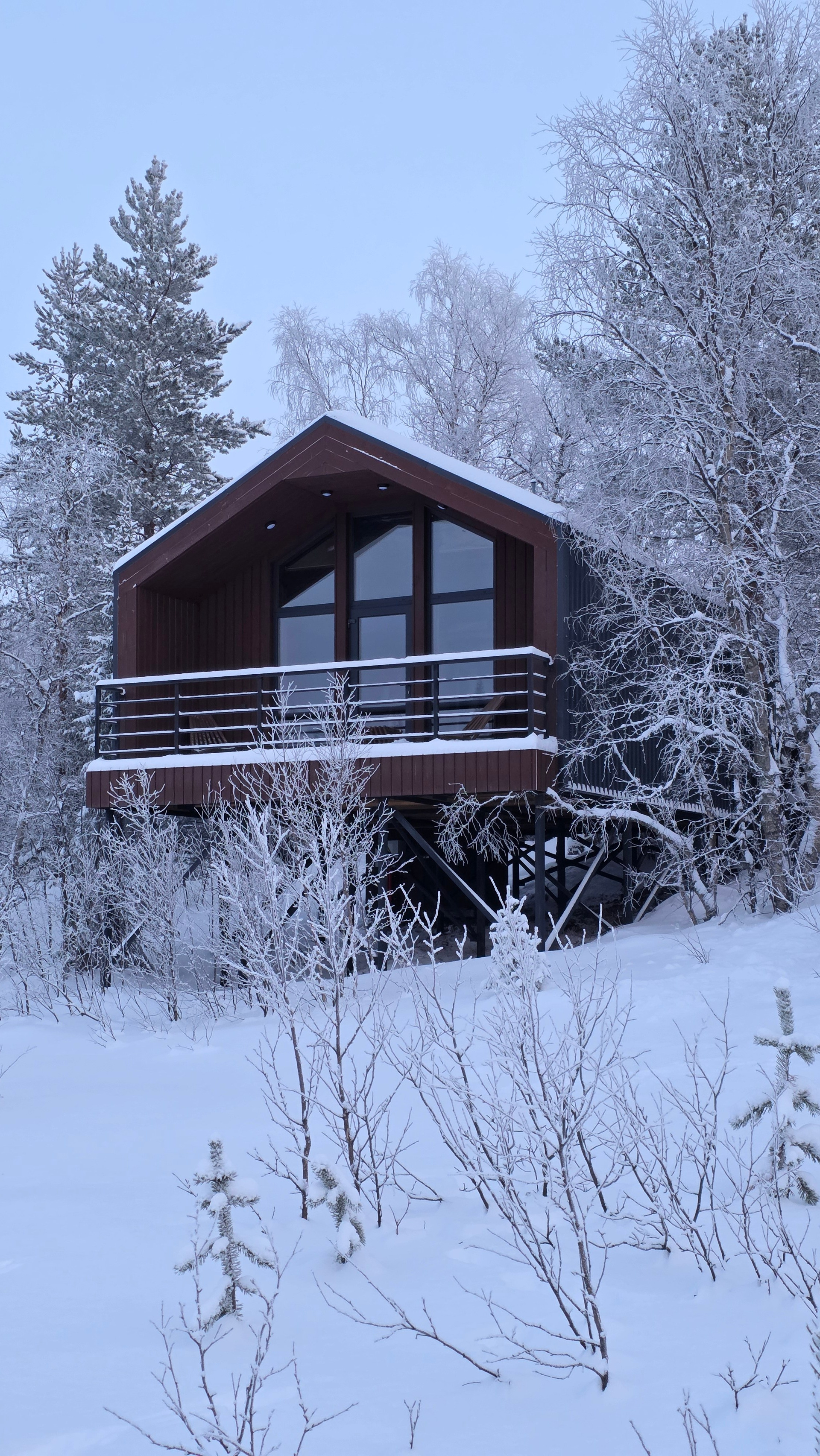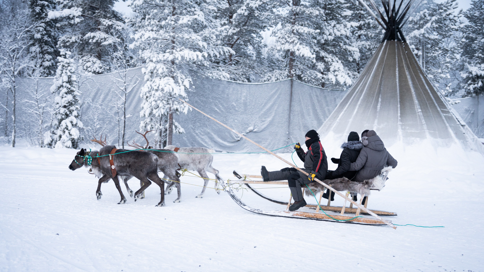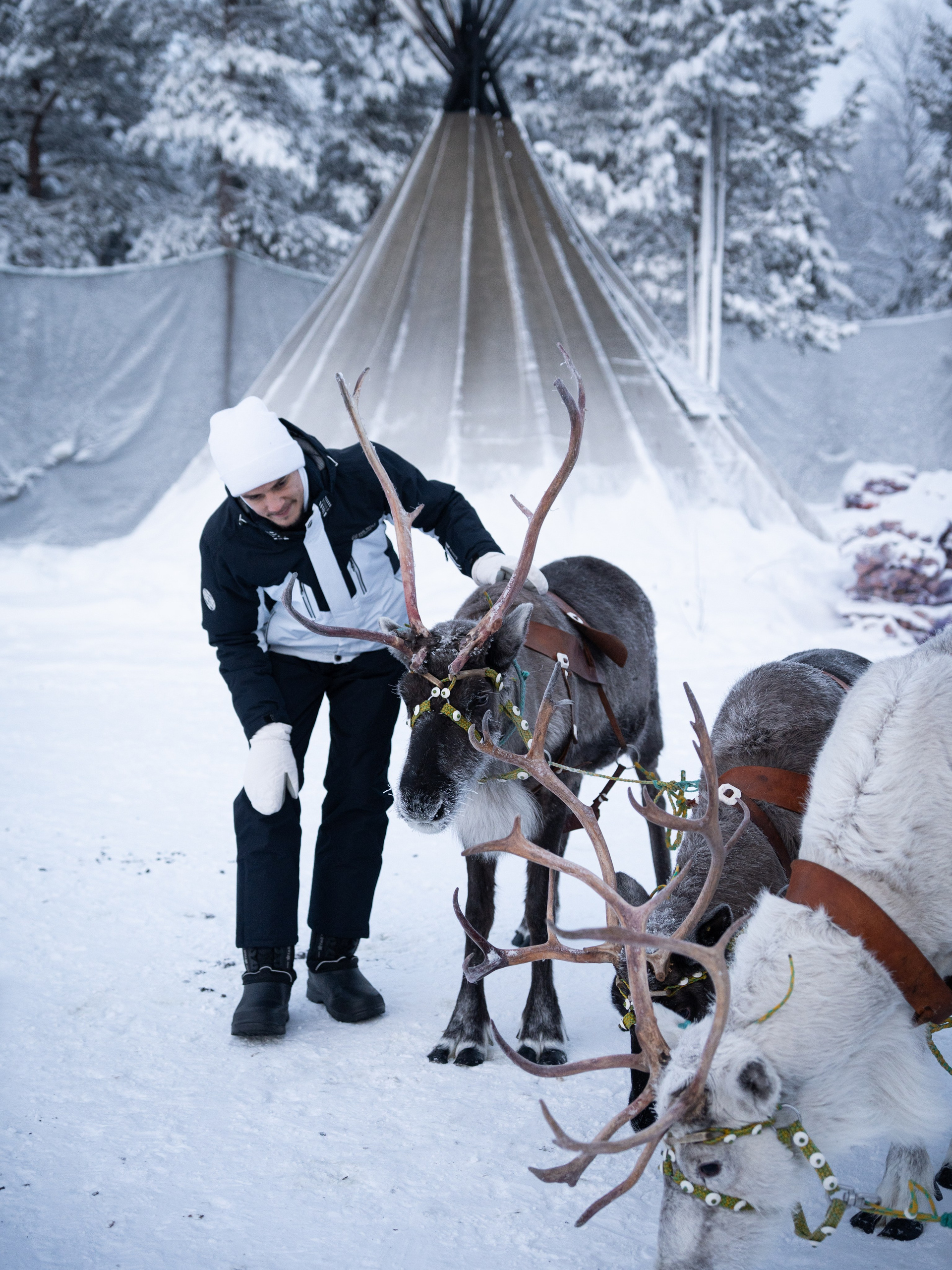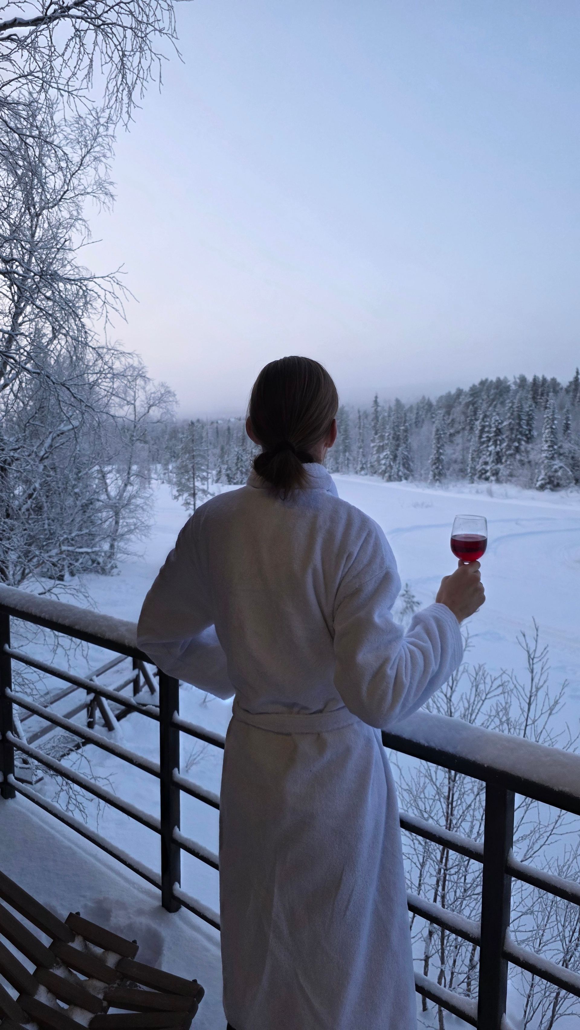 Дорога обратно в Мурманск — время для осмысления. Мы свернулись к глэмпингу «Тайга». Встречали Новый год в домике посреди заснеженного леса. А наутро проснулись от звука колокольчика оленьей упряжки у нас под окнами и отправились кататься в соседний парк «Северное сияние».