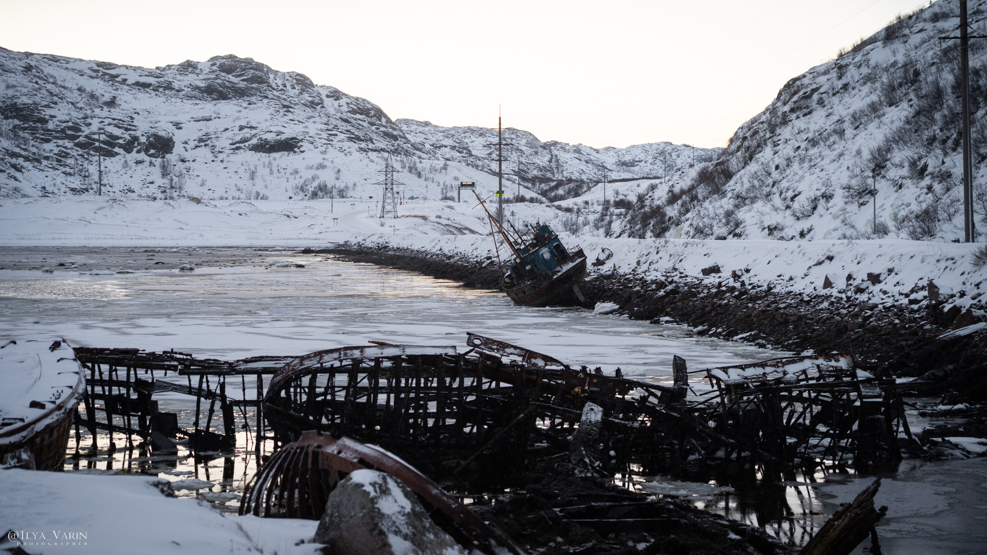 Первым делом — идёшь к кладбищу кораблей. Ржавые скелеты шхун и траулеров вросли в берег, как древние ископаемые. Волны бьются об их борта, туман окутывает мачты. Соль и ветер медленно стирают названия и истории, превращая корабли в часть самого ландшафта — молчаливых стражей этого холодного моря.