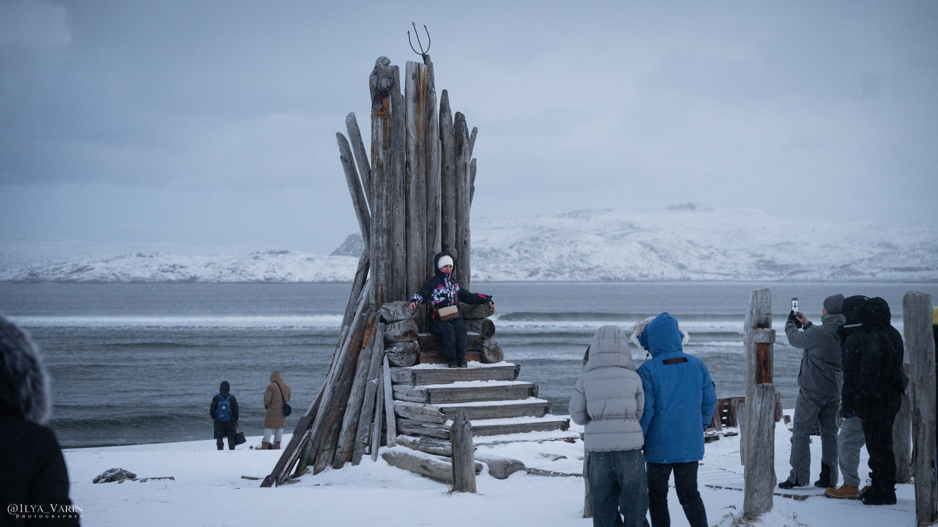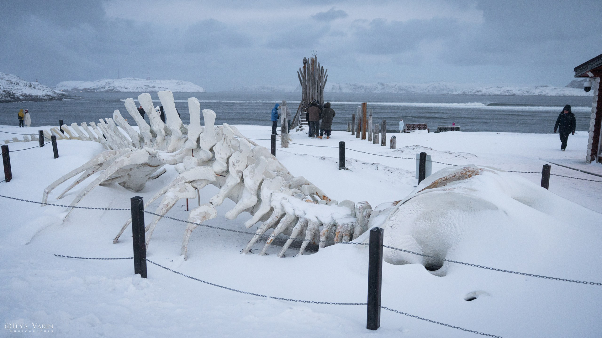 Одна из популярных достопримечательностей Териберки — тот самый макет скелета кита, оставшийся после съёмок фильма «Левиафан». На фоне суровых пейзажей выглядит абсолютно настоящим. И «место встречи» — просто точка на карте с самодельным троном из коряг и качелями над пропастью. Сидишь, качаешься, смотришь на океан и понимаешь, что это оно — то самое место.