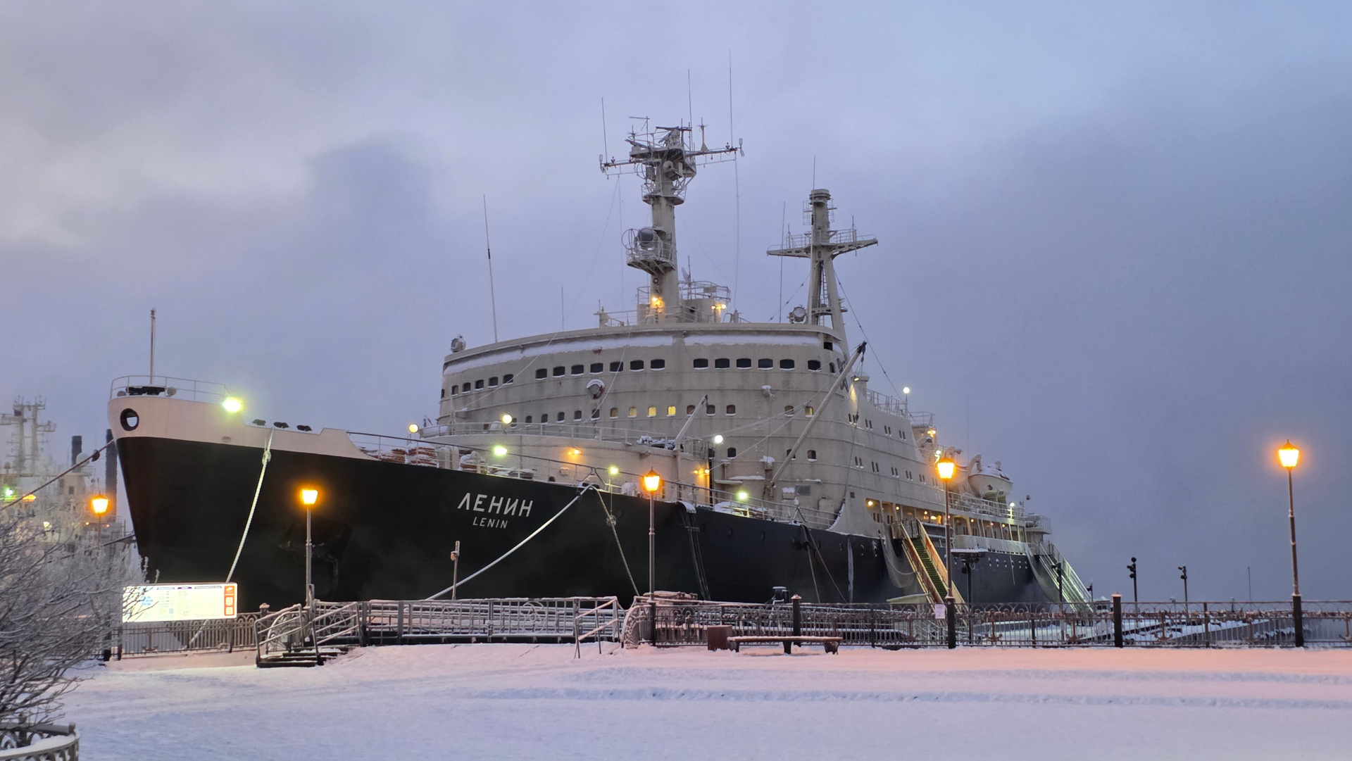 Спускаешься в порт — к ледоколу «Ленин». Первый в мире атомный ледокол. Это не музей, это — символ эпохи. Внутри идеально сохранившийся мир 60-х: полированное дерево, латунные приборы, пульты управления. Чувствуешь себя героем научной фантастики.